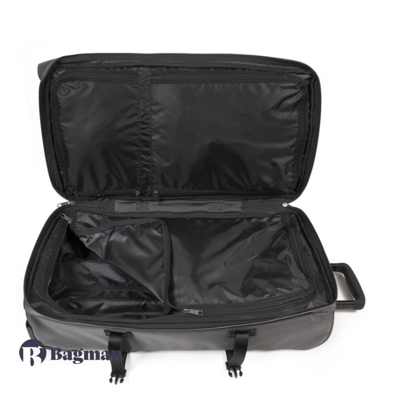 Чемодан на двух колесах предоставит возможность легко путешествовать и иметь с собой большой запас вещей. Аксессуар Eastpak Tranverz M изготовлен с прочной задней поверхностью, жестким каркасом и мягкой передней частью. Его можно стянуть боковыми ремнями, чтобы придать уменьшенные габариты или дополнительно застегнуть чемодан.