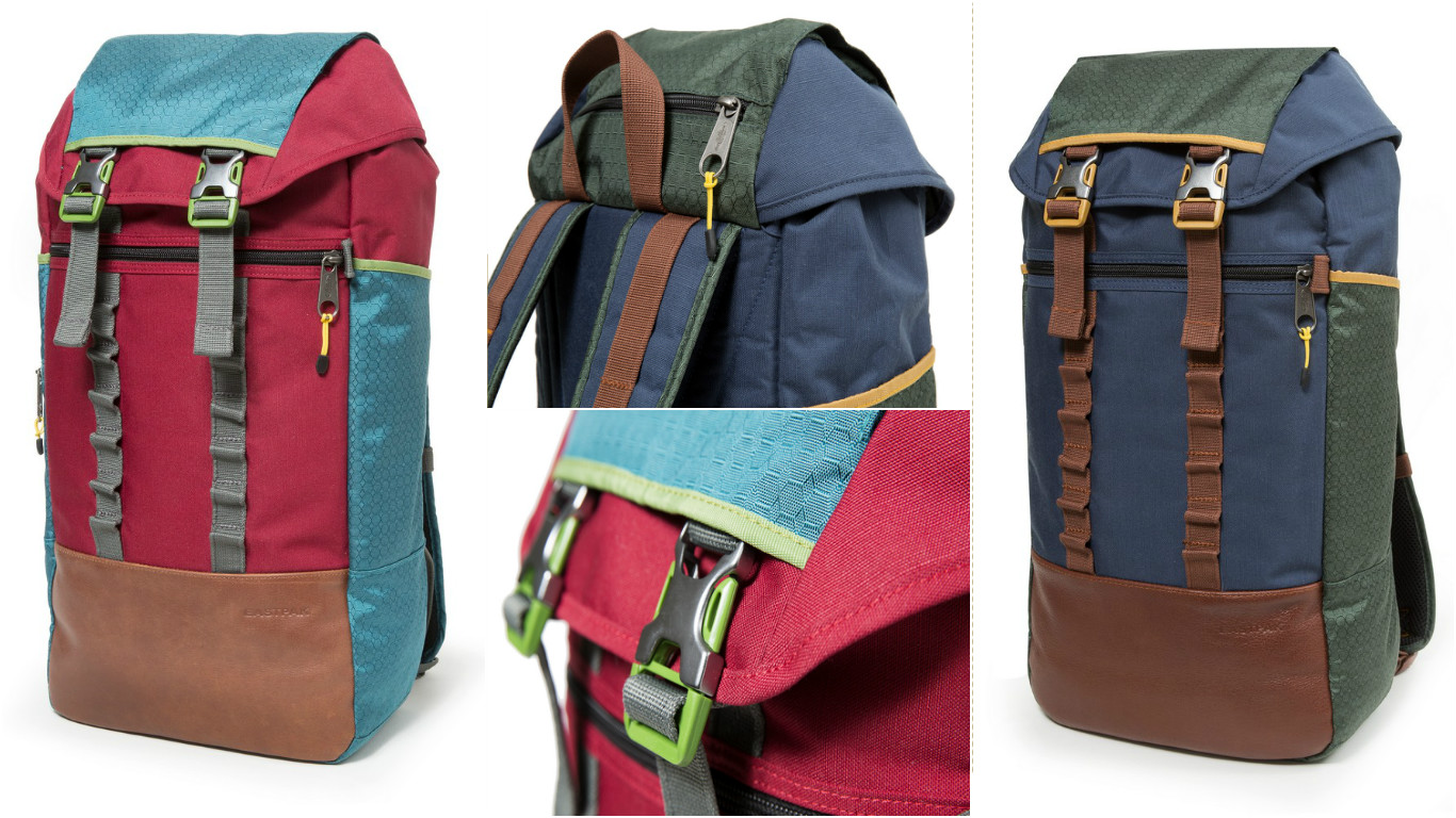 Eastpak захоплює дух відкритих просторів. Розширені функції і ретельно підібрані тканини виводять модельний ряд Merge на новий рівень. Так в нових моделях є присутніми два насичені колірні варіанти, надійні блискавки з блокованими зонами, багата шкіряна обробка і металева фурнітура. Надійні шви, зносостійка тканина і стьобана спинка додають безпеки і свіжого погляду на місткий рюкзак для любителів подорожувати.