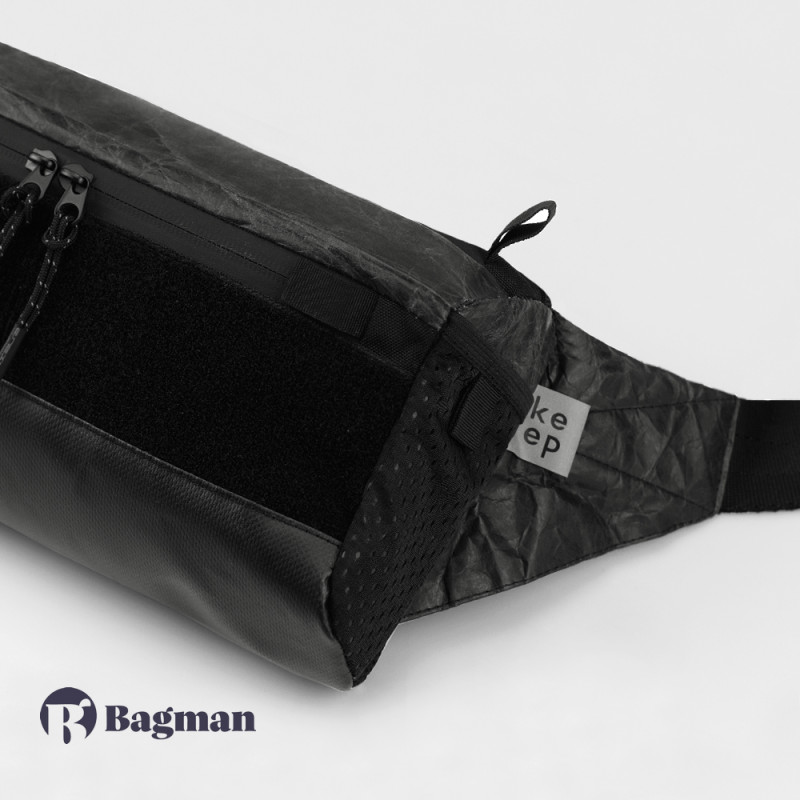 Аксессуар создан из легкого непромокаемого материала тайвек, который обладает высокой стойкостью ко многим химическим веществам. Основное и переднее отделение застегиваются двусторонними водонепроницаемыми молниями.