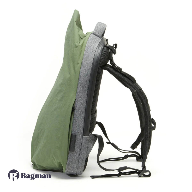 cote&ciel Isar M 13-22L Komatsu Onibegie Nylon Olive Green — это современный рюкзак на каждый день и для путешествий. Он имеет компактный размер, но может быть увеличен благодаря особой конструкции переднего отделения. В сложенном виде рюкзак имеет объем всего 13 л. При максимальном наполнении его объем достигает 22 л.