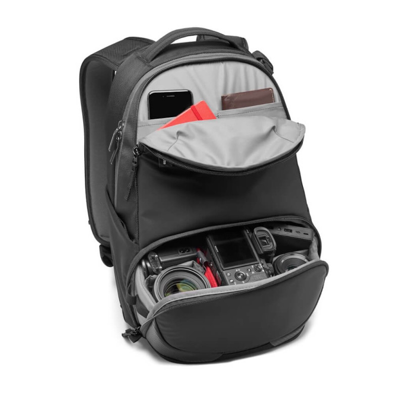 В специальном отсеке для техники получится разместить DSLR или CSC-камеру с тремя объективами. Все компоненты отделяются толстыми перегородками, которые можно перемещать. Доступ к оборудованию осуществляется спереди. Чтобы увеличить внутреннее пространство для личных вещей, необходимо снять перегородки и расстегнуть внутреннюю молнию.