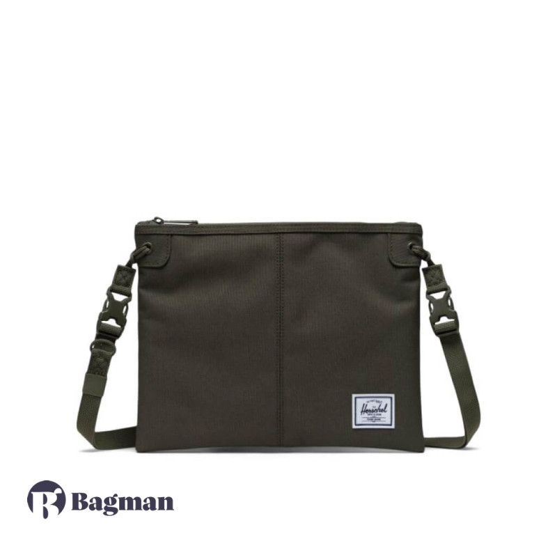 Сумка Herschel Alder Ivy Green — это простой и легкий аксессуар для города. Темная расцветка подойдет и женщинам, и мужчинам. Сумка имеет плоскую форму и рассчитана только для самых необходимых вещей. Узкий ремень делает возможным ношение сумки на плече или через плечо. Также аксессуар можно носить в руке в виде клатча. Для этого необходимо полностью отсоединить ремень.