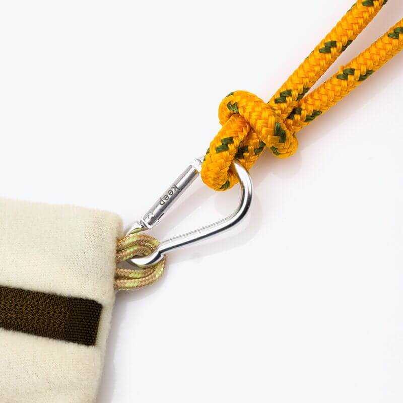 Вместо ремня у сумки прочный паракорд, который пристегивается карабинами с обеих сторон. Его длина быстро регулируется. Сумка в два раза больше, чем модель Fjørd Mini. В нее поместится блокнот формата А5, телефон, документы или другие необходимые мелочи.