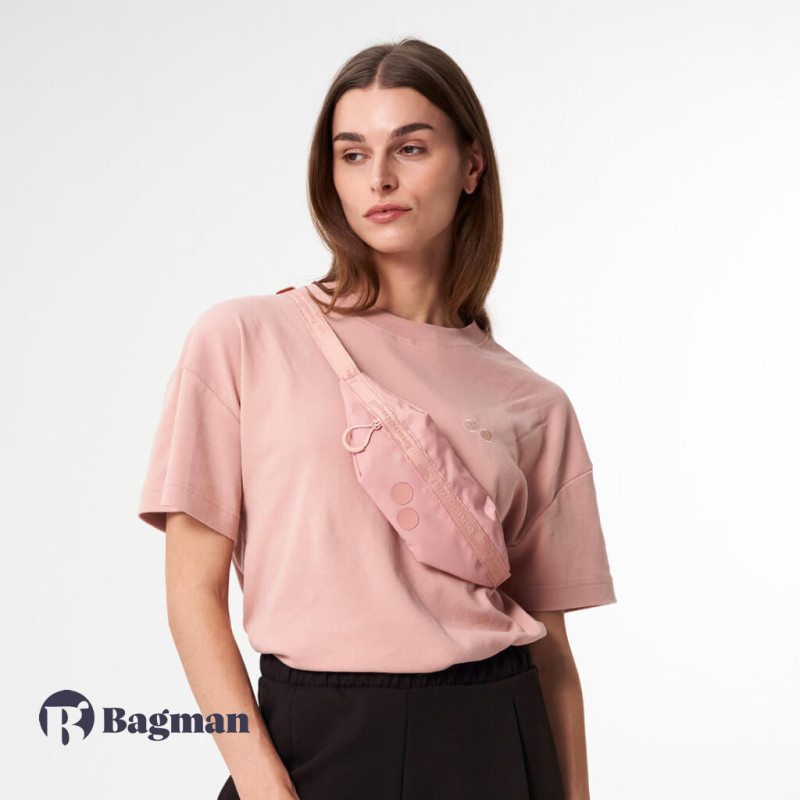pinqponq Nik 1L Ash Pink — это мини-сумка, которую носят на поясе или на плече. Аксессуар розового цвета изготовлен из переработанного пластика и устойчив к промоканию. Фирменная жаккардовая тесьма служит не только украшением сумки, но также и является ее ремнем. А еще она закрывает молнию от попадания влаги.