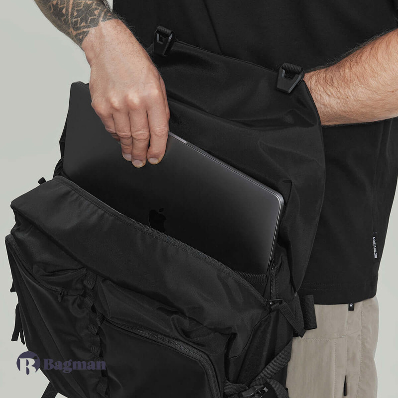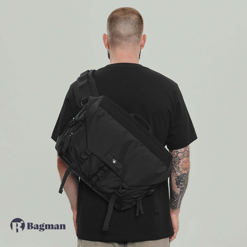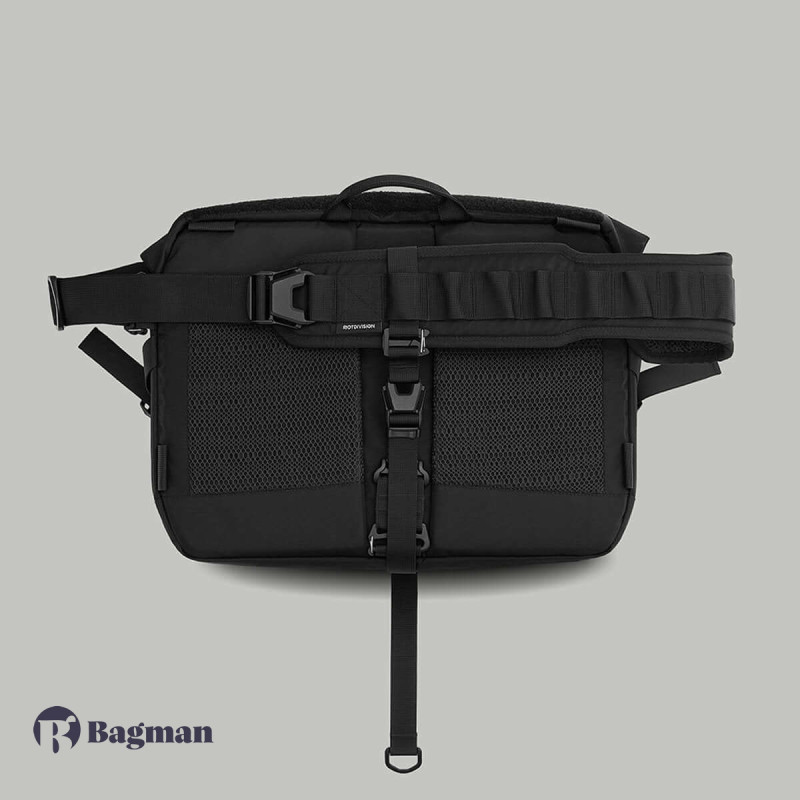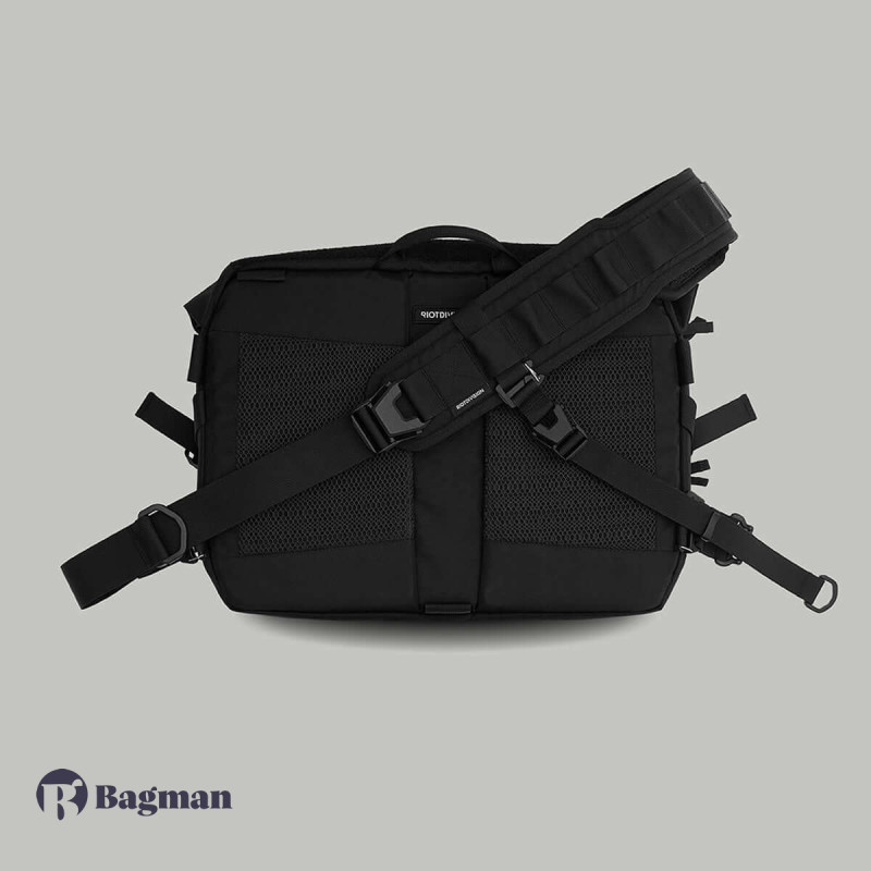 RIOTDIVISION Messenger Bag F18 - це сумка через плече на 18 літрів з щільного нейлону з водовідштовхуючим напиленням, має захищений відсік під 14" лептоп / планшет.