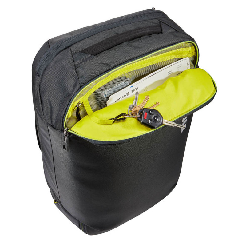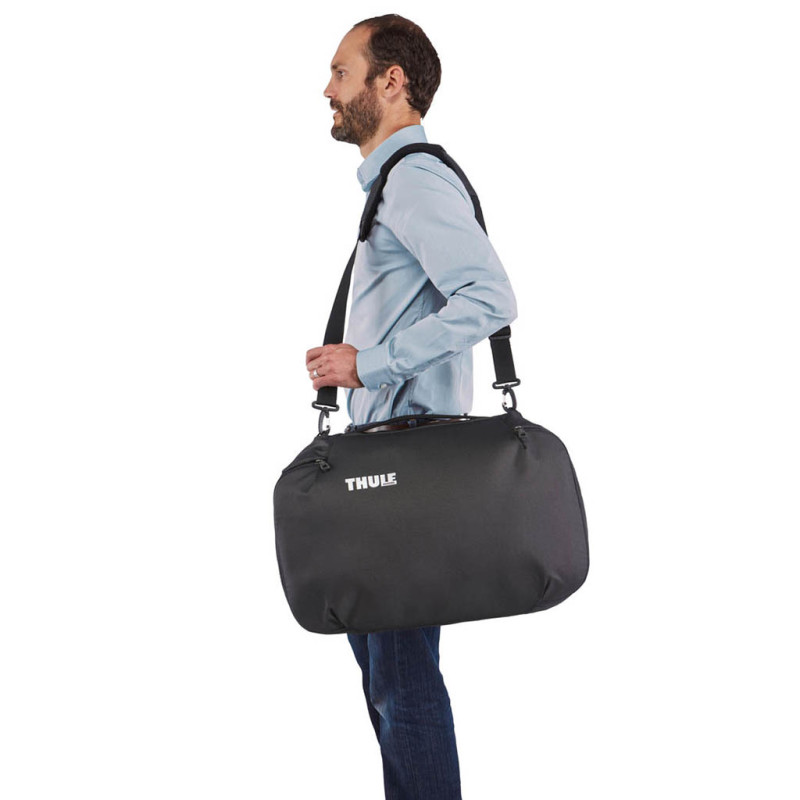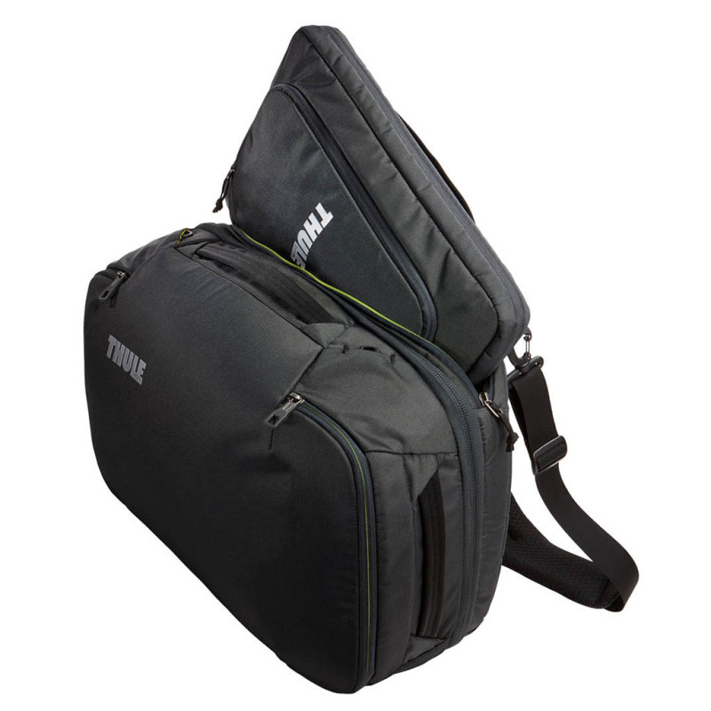 Наплечная сумка Subterra Carry-On способно быстро превратиться в рюкзак для более удобной и легкой транспортировки вещей. Плечевые ремни находятся в заднем потайном кармане. Ремень с накладкой для плечевой носки крепится карабинами и убирается при использовании данной модели в качестве рюкзака.
