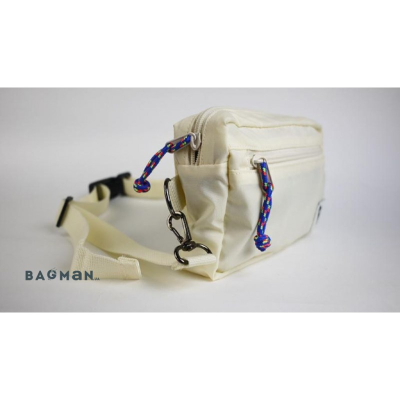 Лёгкая и удобная поясная сумка. В данной модели используется система из четырех направляющих металлических колец, это позволяет носить сумку одинаково комфортно на поясе, на спине, на груди и через плечо.