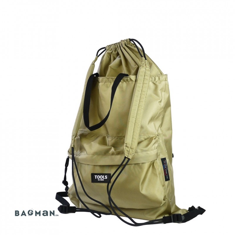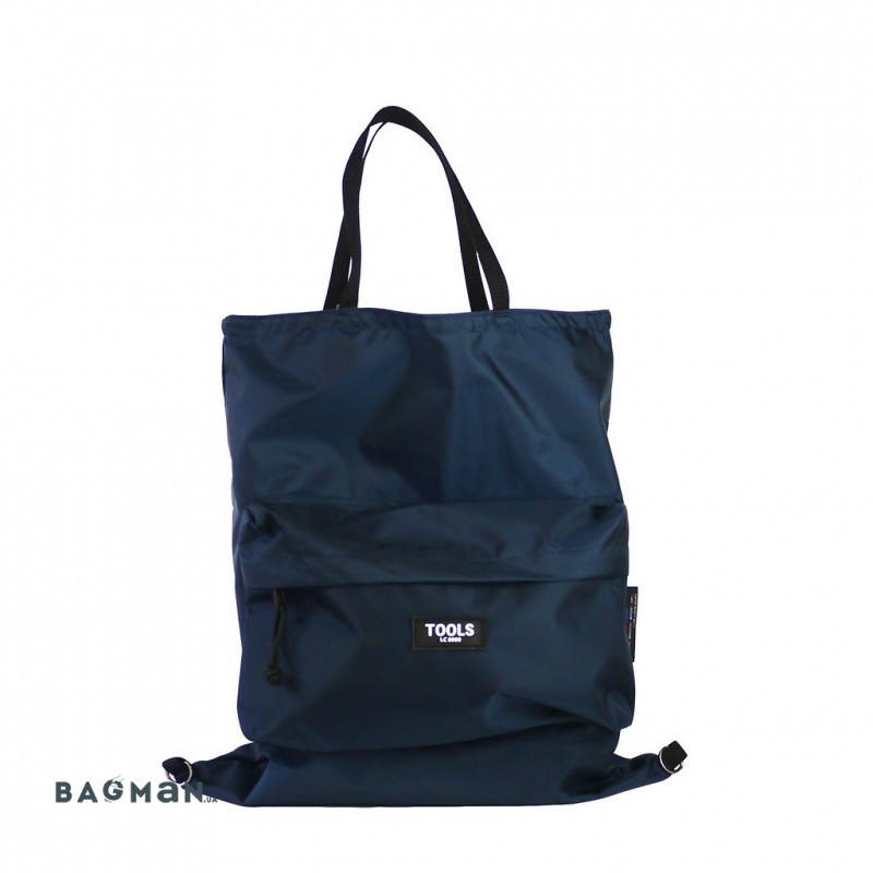 Как уже было сказано ранее - это модель трансформер. Может использоваться как классическая сумка шоппер с клапаном. Но, при необходимости, затяжки клапана могут крепиться к петлям, на нижней части и превращать сумку в удобный, лёгкий и вместительный городской рюкзак.