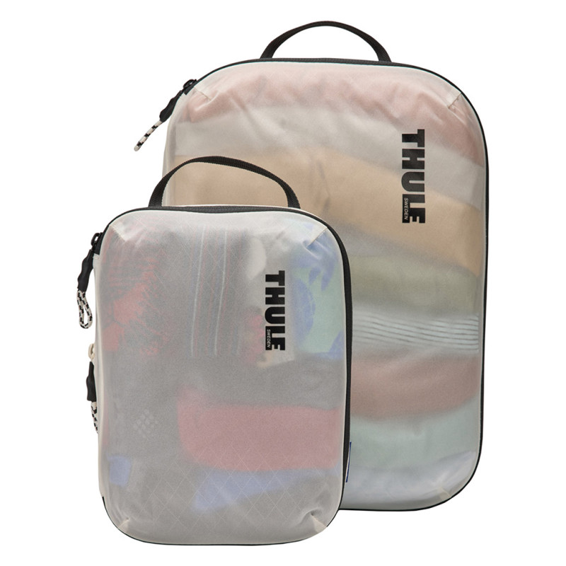 Thule Compression Packing Cube Set — це набір пакувальних боксів для одягу, який складається з двох аксесуарів. Сумка середнього розміру підійде для упаковки штанів і джемперів, а в сумку малого розміру зручно складати нижню білизну і футболки. Обидві сумки поміщаються в ручну поклажу і ще залишається місце для додаткових речей.
