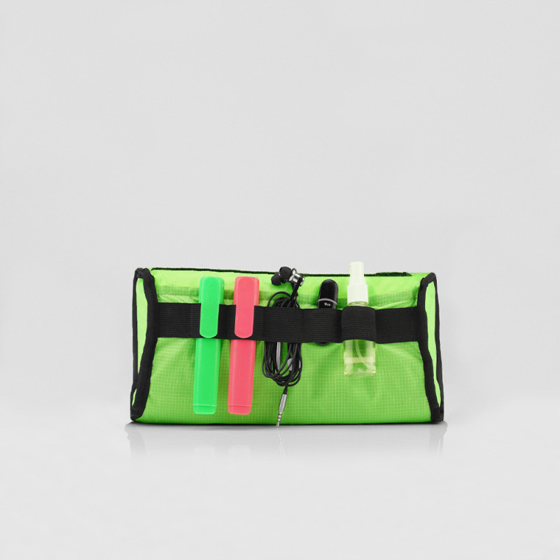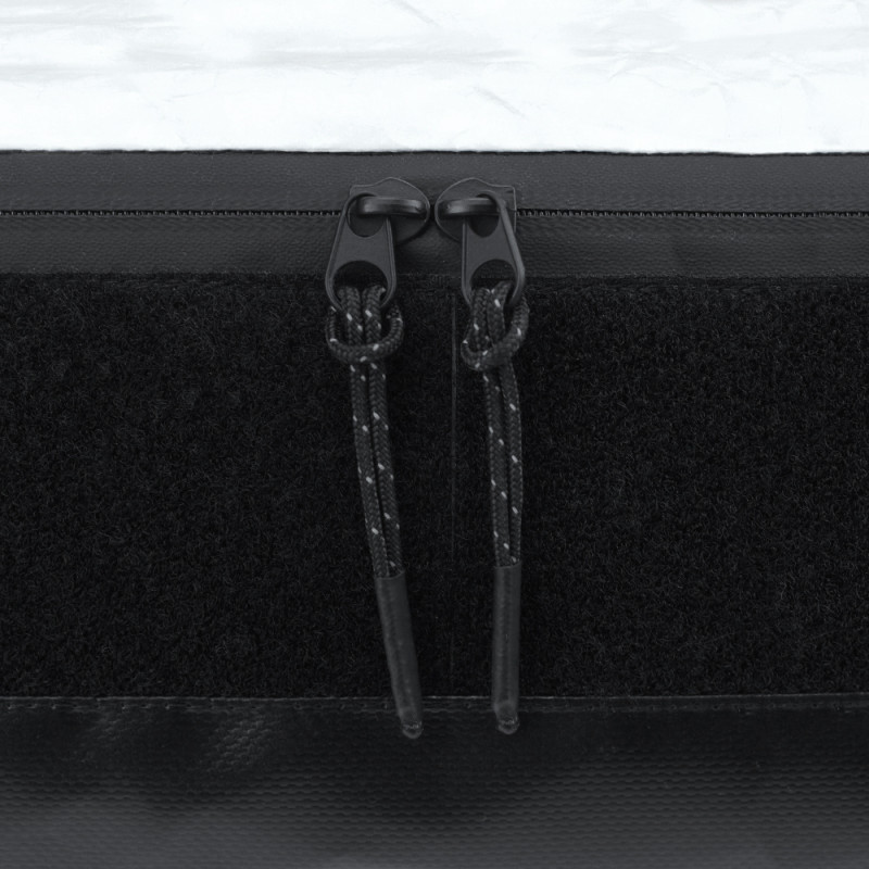 Аксесуар виготовлений з водостійкого тайвека. Цей матеріал стійкий до більшості хімічних речовин, але може бути пошкоджений кислотами. Блискавки на відділеннях водонепроникні. Сумка спереду оснащена велкро панеллю, до якої можна прикріпити аксесуари.