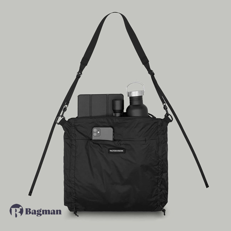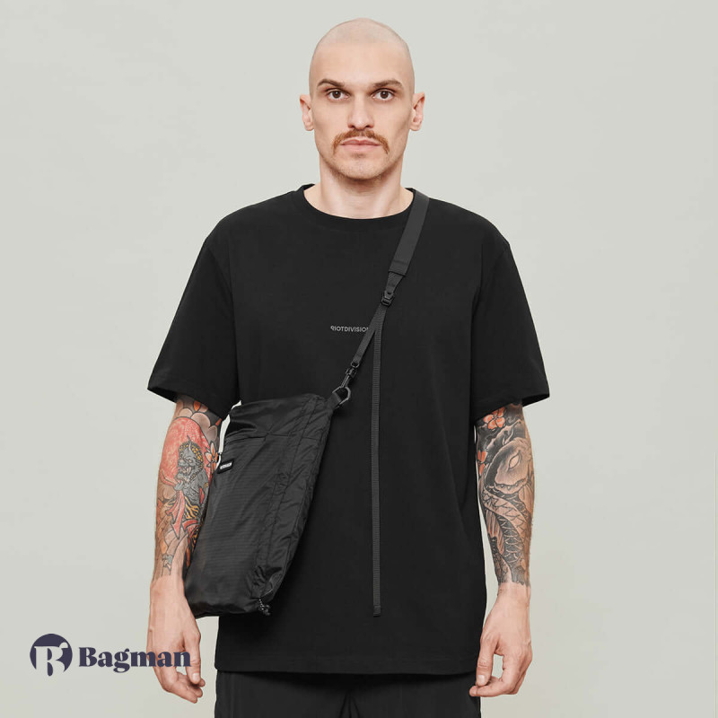 Сумка через плече, що виготовлена з надлегкого ріпстоп нейлону з водовідштовхуючим напиленням. Може зменшуватись в об'ємі завдяки еластичним кордам по боках сумки.
