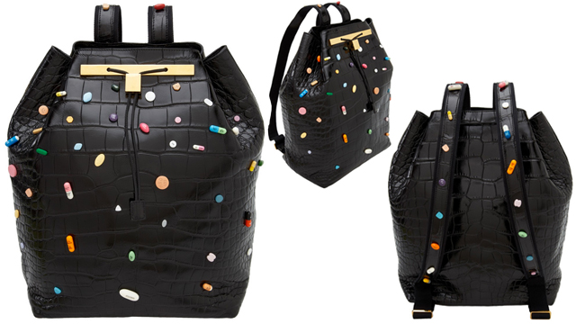 55000 $ - така ціна цього божевільного аксесуара. А Ви думали, що 34 тисячі це межа? Сестри Олсен запросили до співпраці Дам'єна Херста, який підняв цінову планку ще вище. Дозволити таку розкіш зможуть лише обрані чи колекціонери. Пошитий рюкзак з крокодилової шкіри, а дизайн усипаний таблетками (напевно, заспокійливими). Доцільність вкладення коштів під величезним питанням. Ця модель входить до колекції, яка складається з дев'яти рюкзаків у горошок, і кожен із них продається за такою самою ціною.