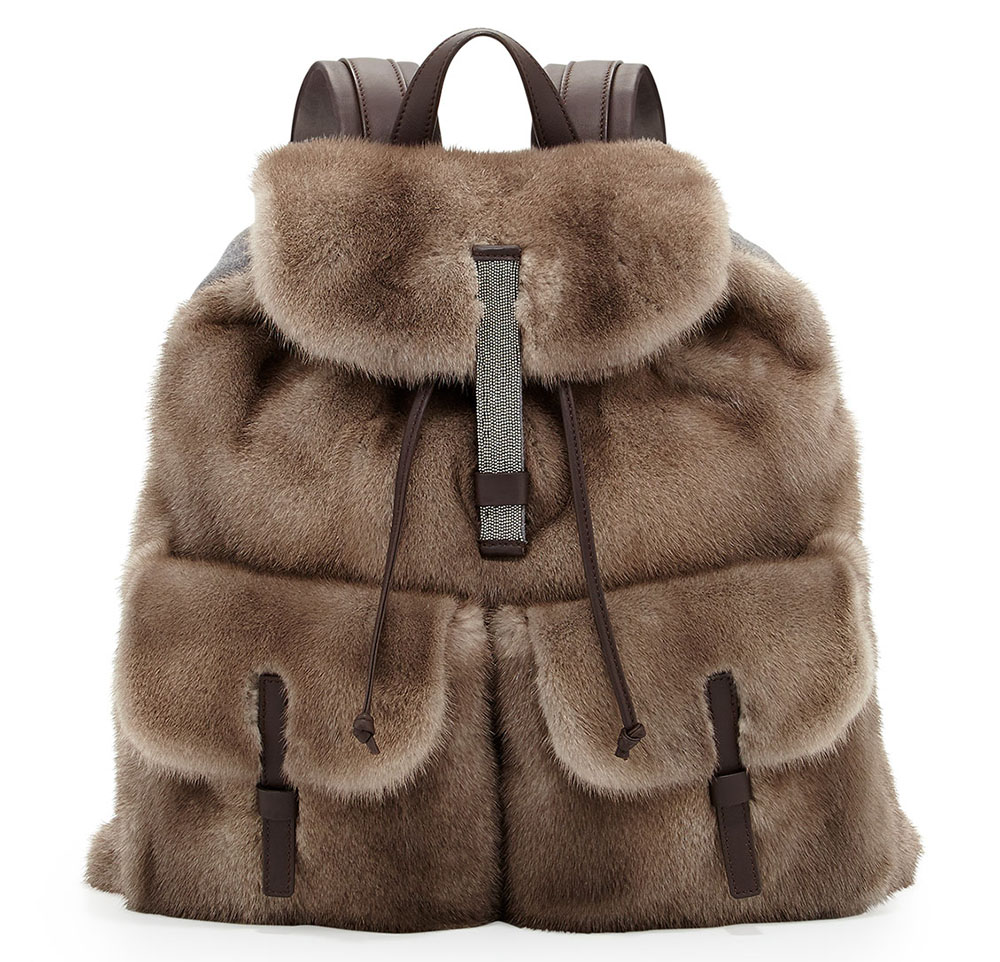 Виявляється сумки та рюкзаки можна робити і з хутра, як це зробив The Row. Аксесуар виконаний у техніці печворк із різних шматочків натурального хутра, що вплинуло на таку високу ціну майже 17 тисяч доларів. Публіка сприйняла цю модель неоднозначно. хтось залишився у захваті, а хтось не погодився б носити наплічник навіть безкоштовно. Зрозуміло одне, екзотична модель здатна епатувати.