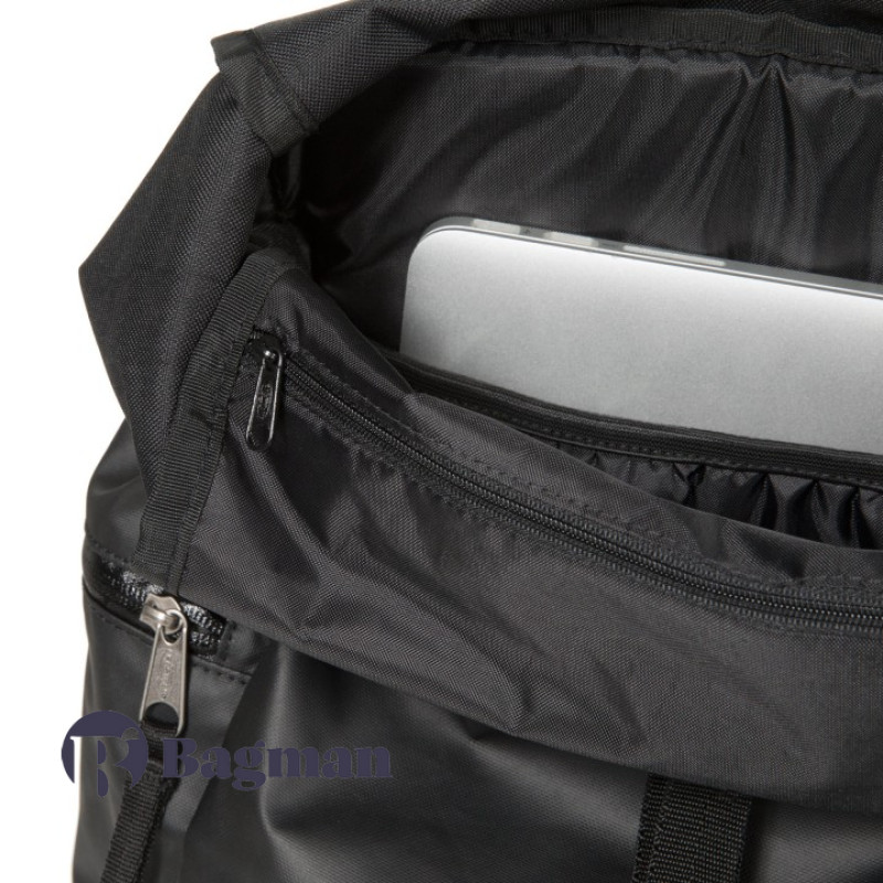 Роллтоп MACNEE від Eastpak одна з найпопулярніших моделей, культової марки, останніх років. У колекції Весна-Літо 2019 ця модель представлена в кольорі Topped Black. Високоякісний поліестер, вкрай зручний у носінні, в парі з міцною підкладкою дають відмінний вологозахист. Рюкзак має кишеню для ноутбука до 15 дюймів і внутрішню кишеню на блискавці, для збереження всього найважливішого. А зовнішні бічні кишені з прогумованими блискавками допоможуть без проблем упорядкувати всі необхідні дрібниці. Конструкція Роллтоп надає аксесуару вінтажний вигляд і дозволяє збільшувати об'єм при необхідності, що дуже корисно в подорожах.