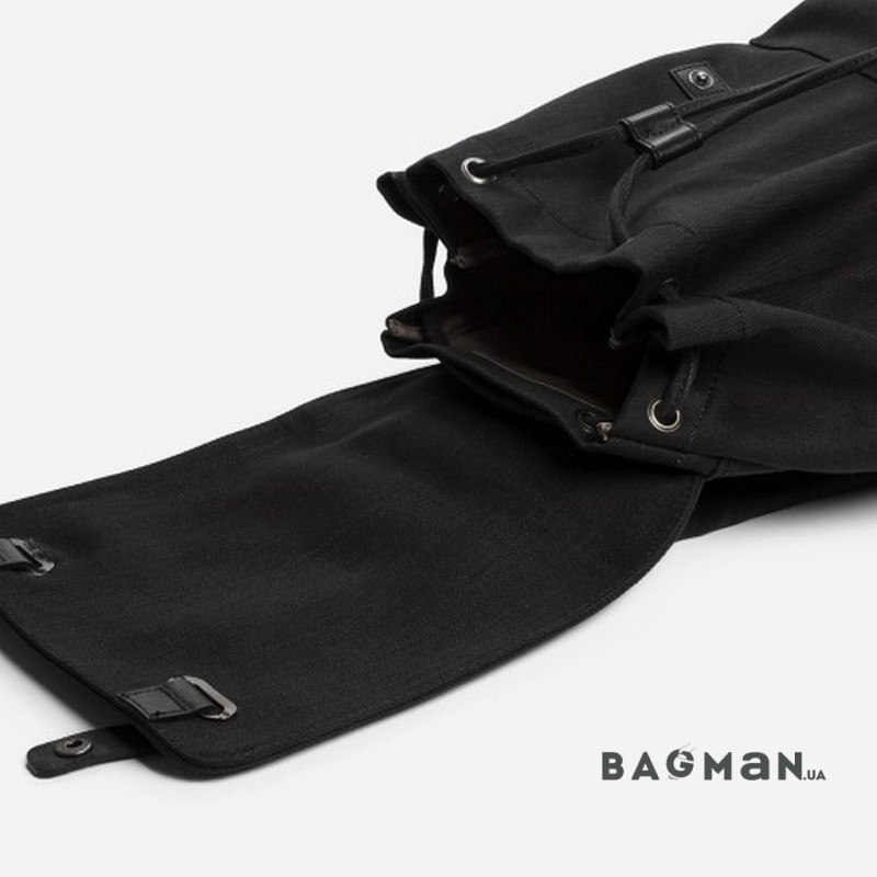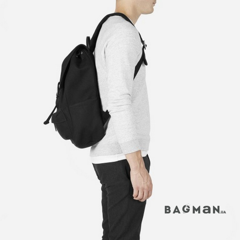Основной отдел под клапаном затягиватся шнурком внутри поместится MacBook 15", рюкзак имеет боковые карманы, внешний накладной карман на молнии.