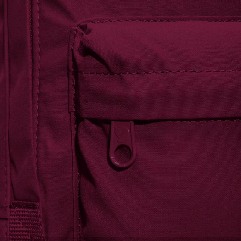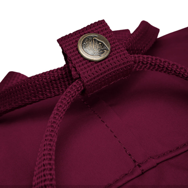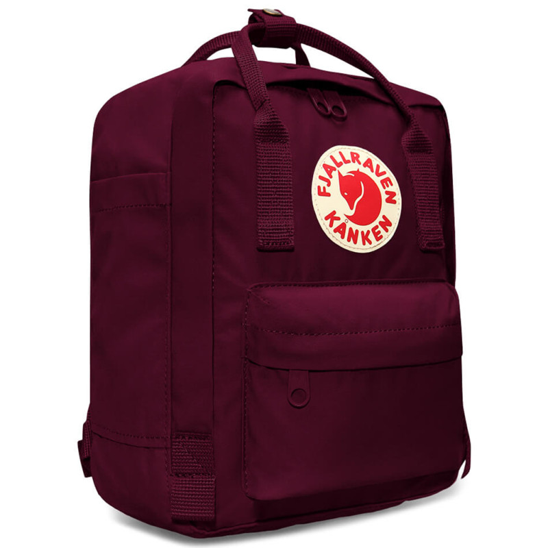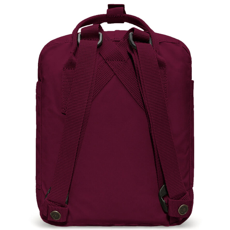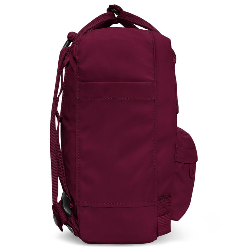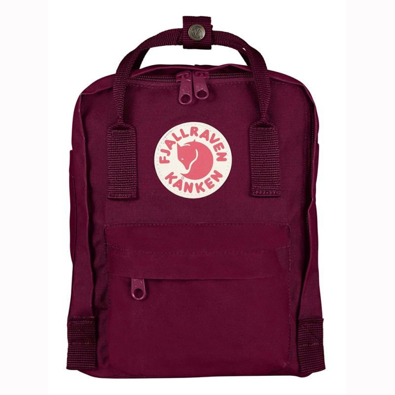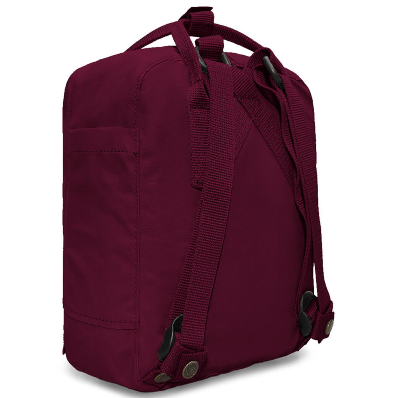 Рюкзак для дітей і дорослих Kanken Mini Plum виготовлений з полівінілової водонепроникної тканини насиченого сливового відтінку. Матеріал стійкий до передчасного зносу і легко чиститься. Рюкзак має легку вагу і призначений для легких речей. Його шлейки швидко і просто налаштовуються під різний зріст. Кінці плечових ременів можуть бути зафіксовані кнопками. Кнопка також скріплює разом і верхні ручки для перенесення.