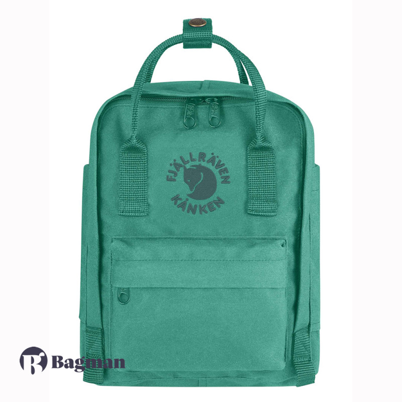 Рюкзак Re-Kanken Mini Emerald имеет приятный изумрудный оттенок, полученный в результате окрашивания по технике SpinDye и украшен машинной вышивкой с фирменной символикой. Материал изготовления аксессуара был создан из переработанного пластика, является водонепроницаемым, износостойким и легко очищается от загрязнений без чистящих средств.