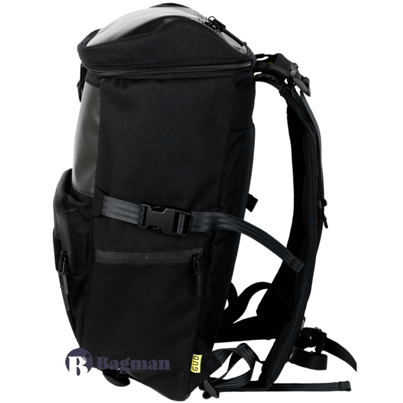 У середині рюкзака знаходиться один основний відділ з органайзером для дрібниць і відсік для ноутбука. Дістатися в середину також можна за допомогою бічного доступу (на zip-блискавці). Зовні є кілька кишень з органайзерами.