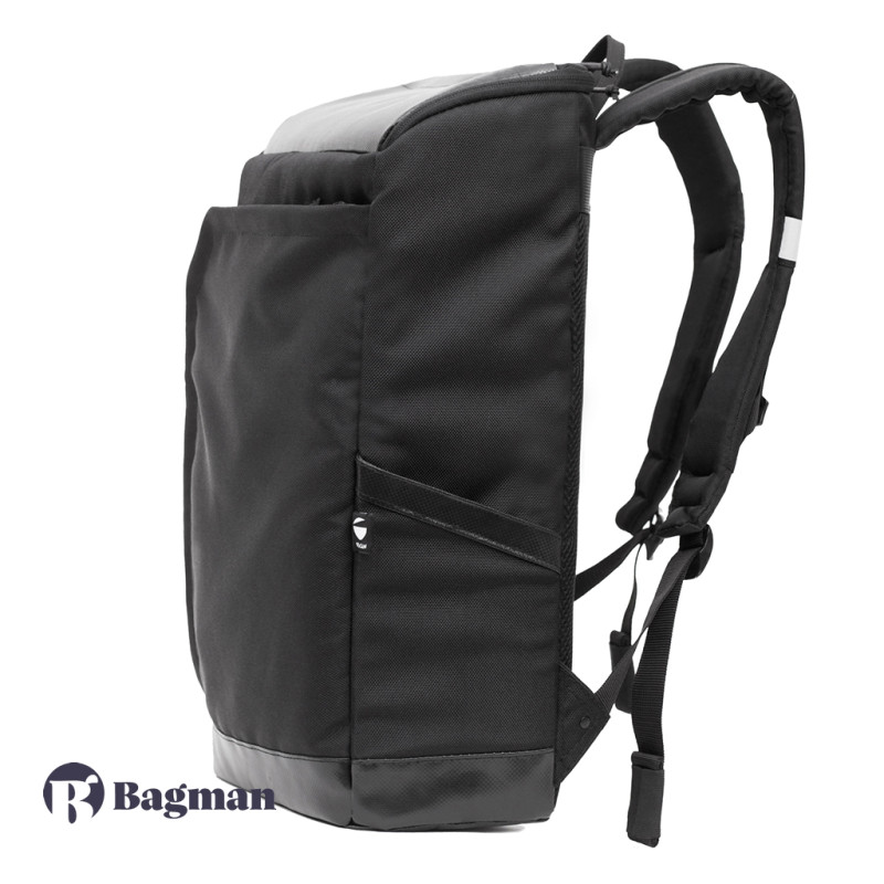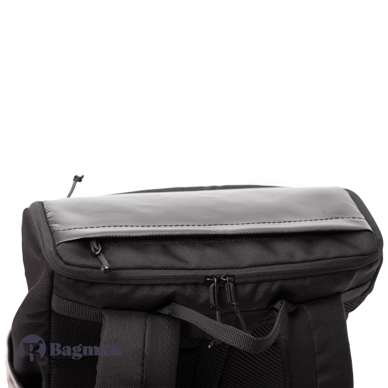 Рюкзак виготовлений з матеріалу з водовідштовхуючими властивостями Cordura. Чорне забарвлення практичне в щоденному носінні. На прошитій спинці є покриття з сітки, яке пропускає повітря.