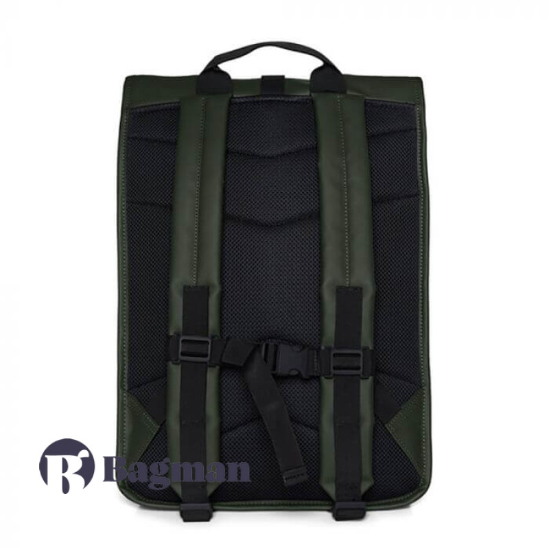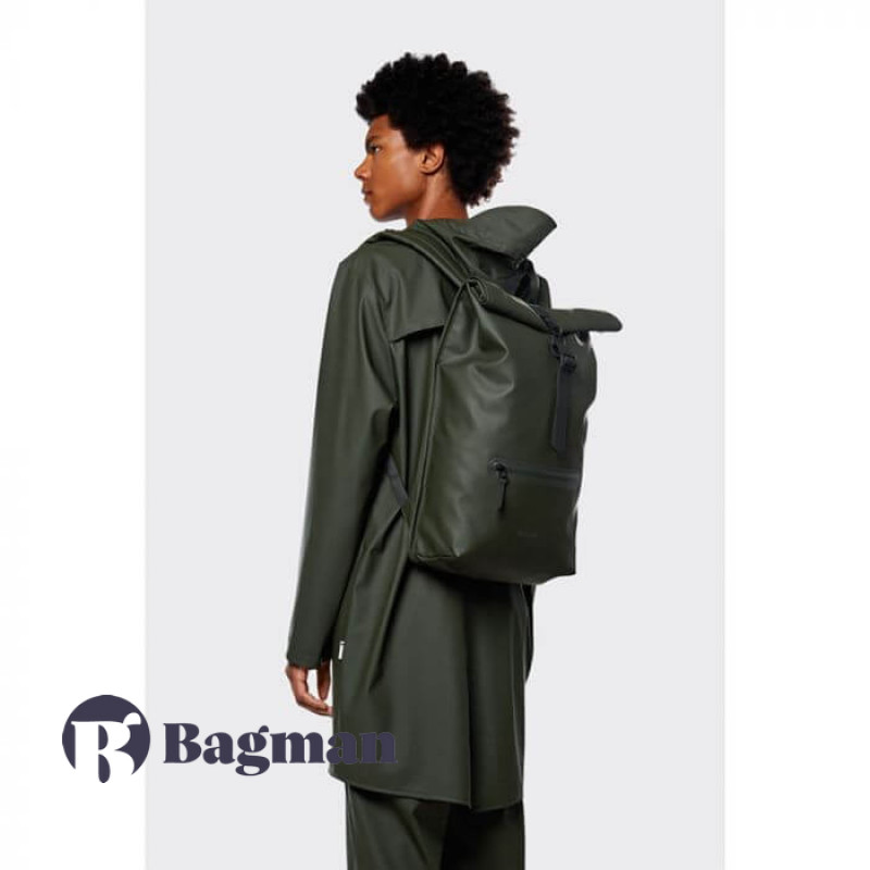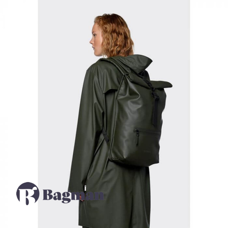 Rains Rolltop Rucksack 13L — це міський рюкзак з конструкцією роллтоп, яка дозволить налаштувати розмір аксесуара залежно від кількості речей. Рюкзак підходить для піших прогулянок і поїздок на велосипеді. Для зручної поїздки він оснащений нагрудним ременем, який налаштовується за довжиною, переміщається по висоті і пристібається фастексом.