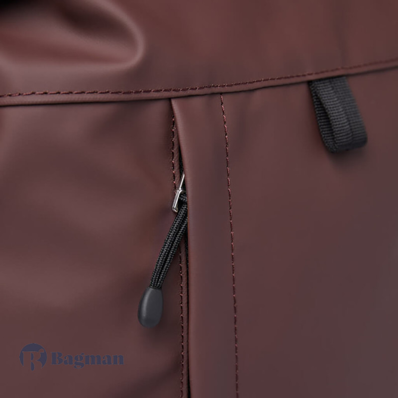 Рол-топ відділення закривається пластиковими фастекс-защіпками з боків. Всередині у нього є місце для ноутбука і кишеня для дрібниць, в якій можна розглянути всі речі не відкриваючи. Рюкзак доповнений невеликою зовнішньою кишенею спереду.