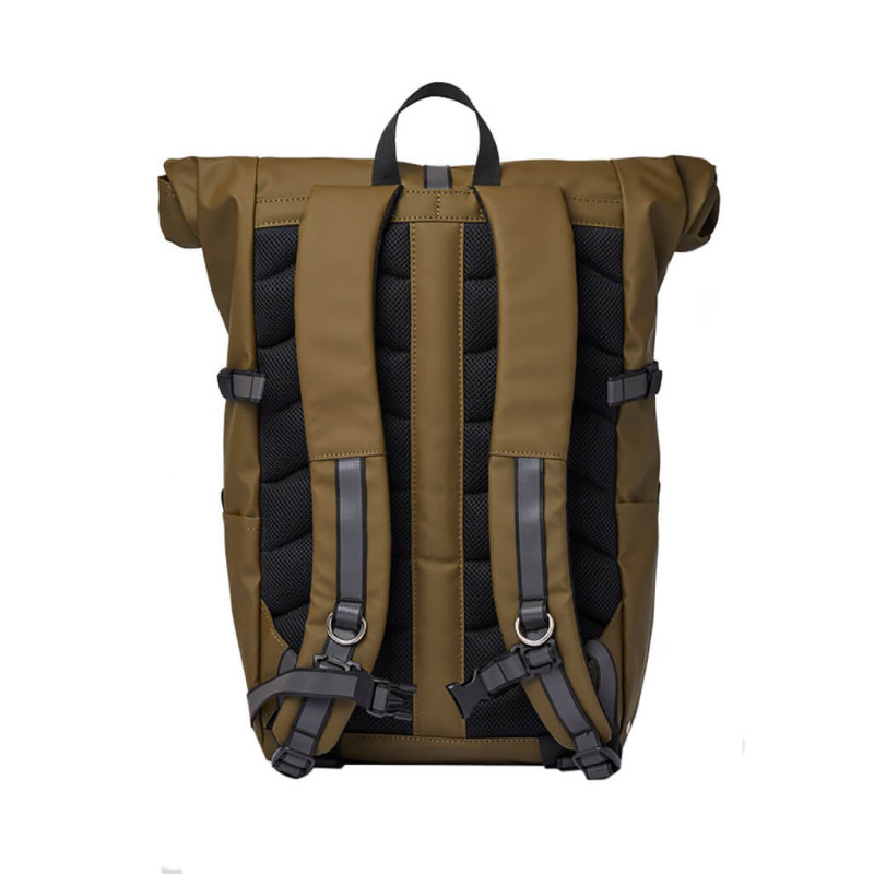 Міський рюкзак RUBEN 2.0 Olive від шведського бренду Sandqvist призначений для повсякденного носіння. Його також зручно брати з собою в подорожі. Завдяки конструкції рол-топ ви можете регулювати загальний об'єм виробу. Аксесуар є екологічним, оскільки виготовлений з переробленого поліестеру. Матове поліуретанове покриття створює бар'єр для вологи, щоб речі не намокли під дощем.