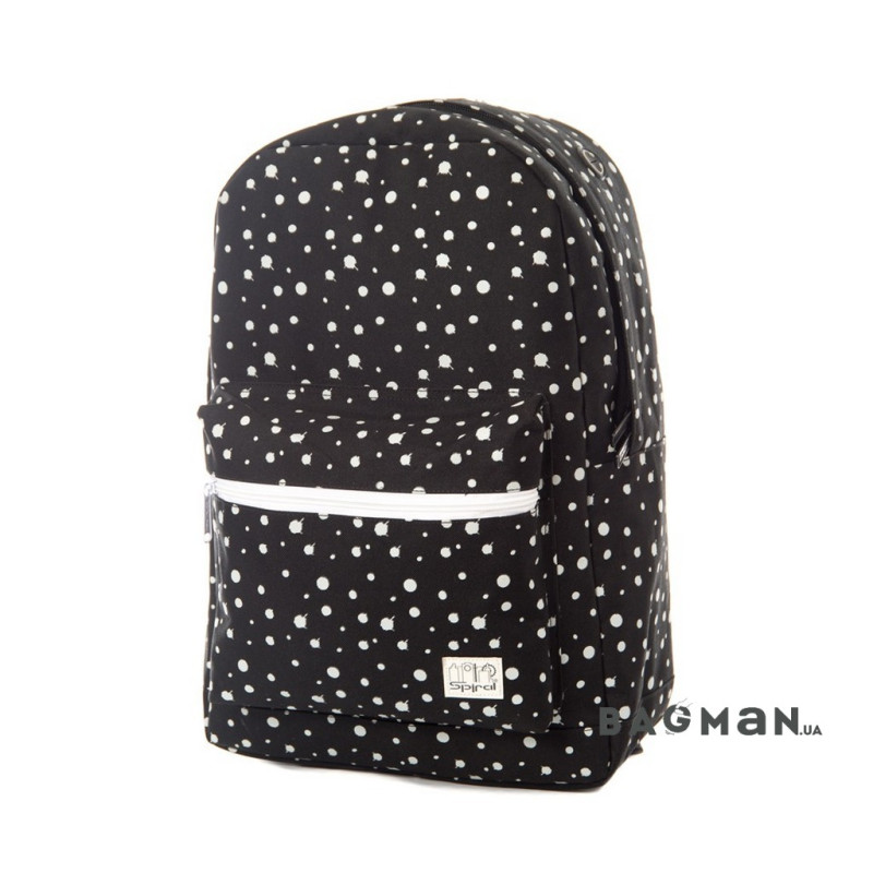 Этот милый рюкзачок представлен брендом Spiral в серии аксессуаров для города: прогулок, экскурсий, ежедневных поездок на работу, кратковременных путешествий и велосипедных странствий. Изготовлен из качественного полиэстера класса люкс, рюкзак оснащен всем необходимым для уютного и комфортного передвижения – укрепленными плечевыми ремешками, мягкой спинкой, усиленным дном и сбалансированными габаритами. Дизайн изделия вполне себе лаконичный - черного цвета, он легко дополнен белыми кругляшками, которые служат еще и полезными светоотражателями во время езды на велосипеде.