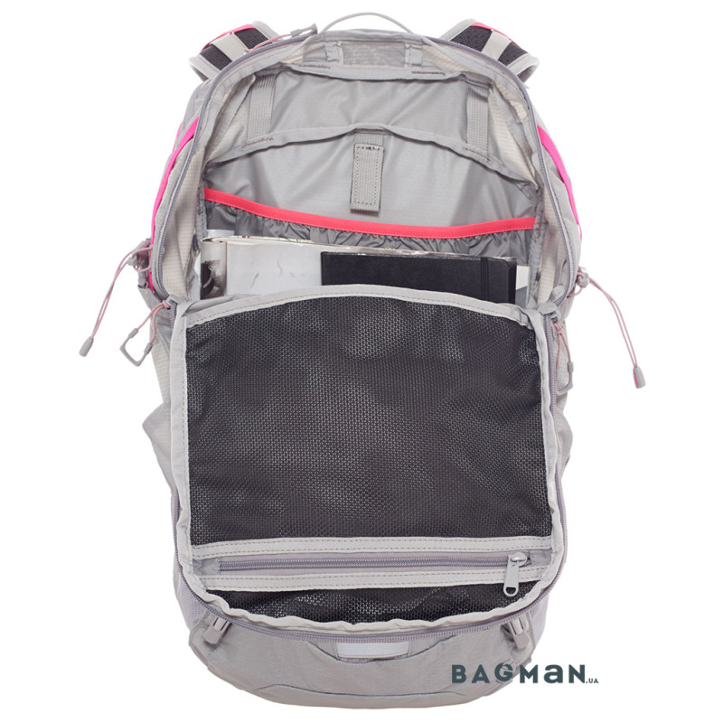 Отделения рюкзака закрываются молниями, на концах которых большие петли. За них удобно открывать рюкзак и еще их можно сцепить отдельным замком. Внутри таких рюкзаков достаточно места для размещения необходимых вещей и также есть отдел для хранения питьевой системы. Выводится наружу она при помощи протягивания трубки в рукав. Внутри есть скрытый карман для важных принадлежностей, бумаг или карты. Также карманами не обделена и наружная поверхность. Среди них два предназначены для бутылок с водой, один тыльный карман – для легких вещей и два кармана на набедренном поясе.