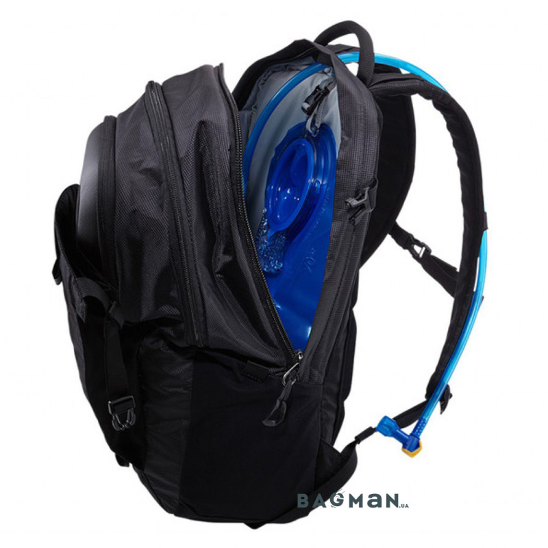 Этот уникальный рюкзак может составить компанию в очень длительных путешествиях. В комплект к нему входит питьевая система, которая находится в отделении для ноутбука и планшета. Дополнительно можно захватить с собой бутылку с водой, поместив ее в боковом эластичном кармане.