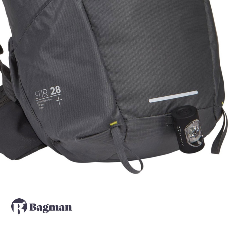 Stir 28L темно-серого цвета создан для использования на природе и в городе. Модель выполнена из нейлона и имеет светоотражающие элементы. Внизу рюкзака есть крепление для фонаря. У рюкзака полностью вентилируемая спинка, которая создаст комфортные условия при постоянной носке.