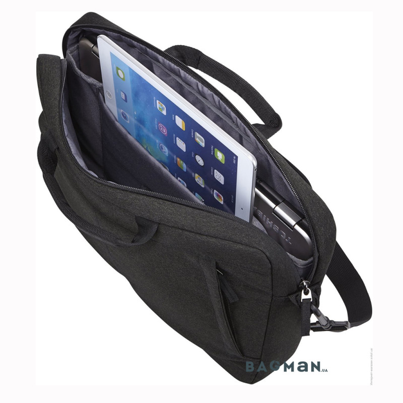 Модель предназначена для транспортировки ноутбука с диагональю экрана 15,6 дюймов, а также планшета размером 10,1 дюйм. В переднем кармане достаточно места для размещения мышки и зарядного устройства, а также документов и билетов на поезд или самолет. Сумка крепится к ручке чемодана либо сумки на колесах, чтобы было комфортнее путешествовать. Для этого на задней стороне сумки для ноутбука предусмотрен специальный ремень. Отделения застегиваются молниями, предоставляя быстрый доступ внутрь и одновременно надежную защиту. Материал изготовления имеет влагонепроницаемые свойства.