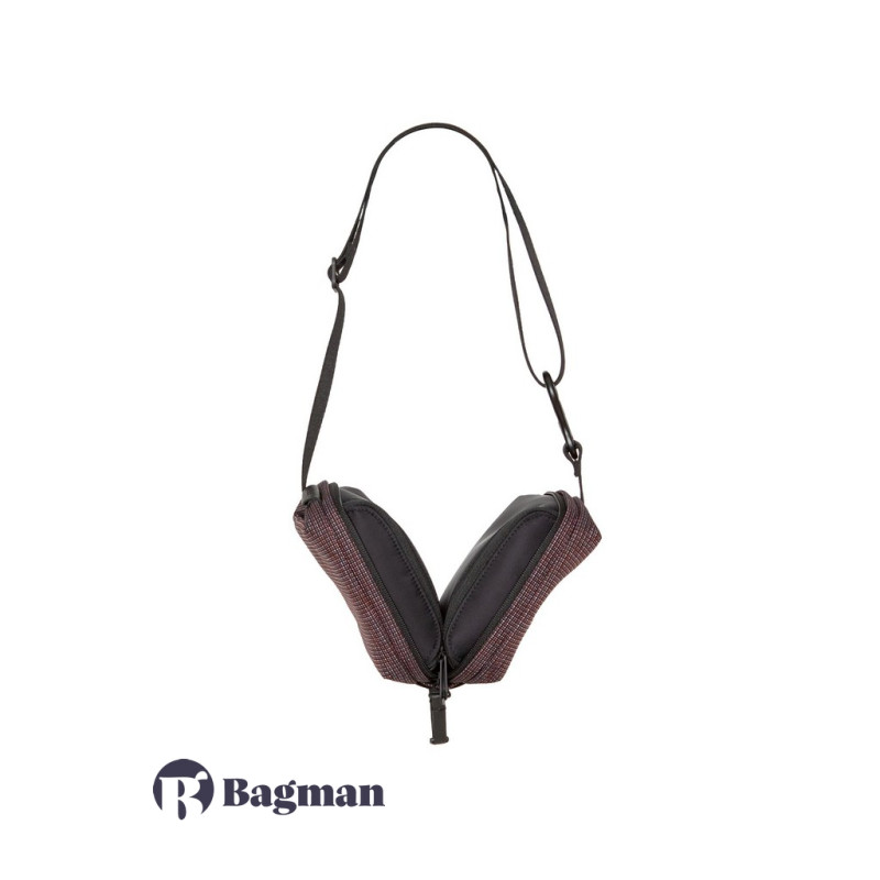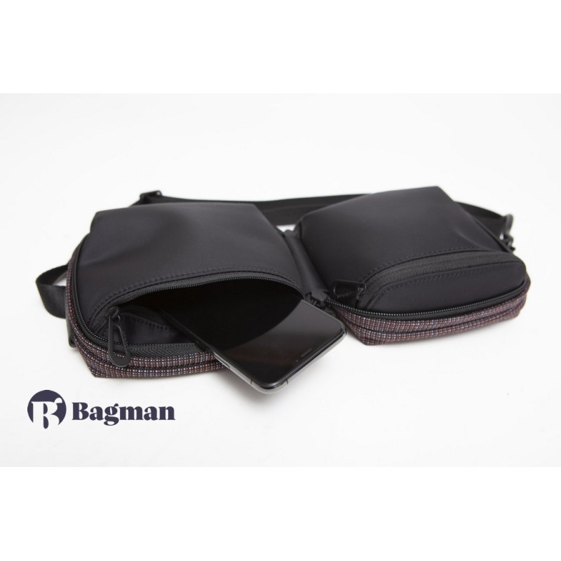 Сумка має два відділення на застібках, які дозволяють розділити речі і легко їх знайти. Відділення можна з'єднати разом або залишити їх роздільними, таким чином, сумка перетвориться на двосекційний аксесуар з візуально меншим об'ємом. Регульований ремінь дасть змогу розмістити сумку на плечі, на грудях і на поясі.