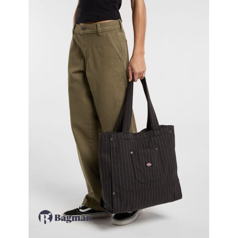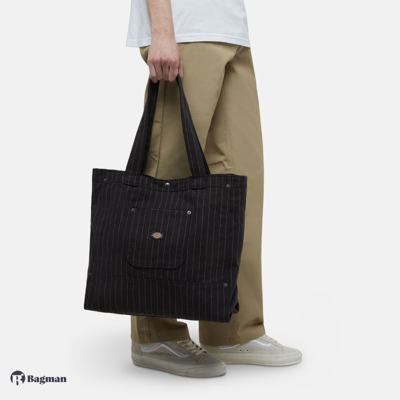 Примітка від команди Dickies: Натхненна робочим одягом, сумка Service Tote Bag — це щільна джинсова бавовняна сумка з вертикальною службовою смужкою, металевими заклепками та металевою застібкою на кнопці. Зовнішня накладна кишеня пропонує додаткове місце для зберігання речей та має культовий тканий лейбл Dickies.