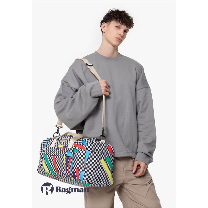 Наша ретро-колекція відроджує культовий абстрактний принт з архіву Eastpak 80-х років. Ця спортивна сумка, готова до пригод, має просторе основне відділення для вашого спортивного або туристичного спорядження та регульований плечовий ремінь для носіння без використання рук.