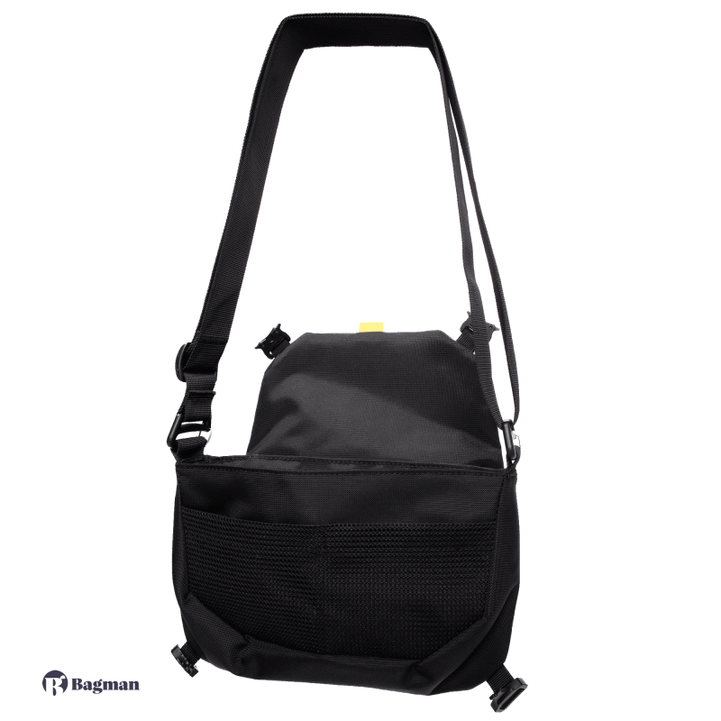 - Основний регульований ремінь кріпиться до сумки за допомогою знімних пластикових G-Hook-карабінів шириною 40 мм