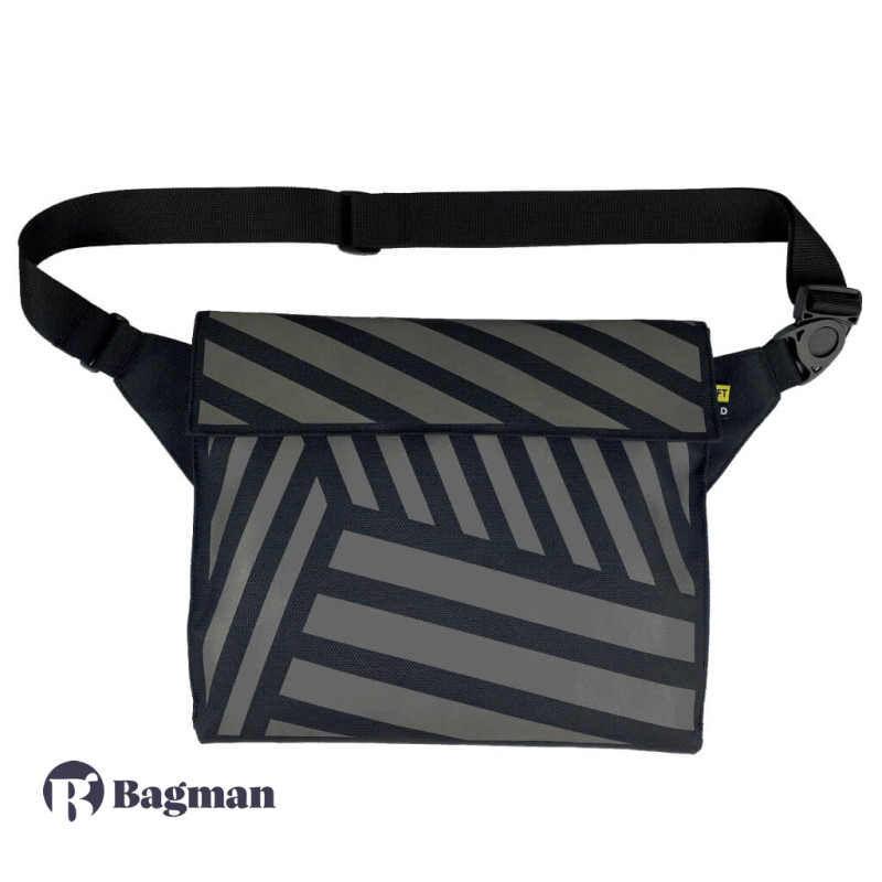 GUD Blaze Black — це стильна сумка для жінок і чоловіків з плоским дизайном. Вона виготовлена з міцного нейлону з фактурною поверхнею і прикрашена камуфляжним принтом. Візерунок відображає світлові промені в темряві і сумка виглядає ще ефектніше. Такий принт використовувався моряками в Першій світовій війні. Поліуретанове покриття захищає виріб від промокання.