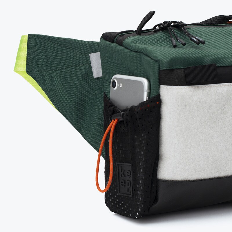 Внутрішня система організації дозволяє впорядкувати кабелі, навушники, з іншого боку подвійний карман. Зовні бічні сітчасті кишені. Фронтальна кишеня з карабіном для ключів і швидким доступом. Система швидкого ослаблення поясного ременя з анатомічними виносами робить слінгпек ще комфортнішим у використанні.