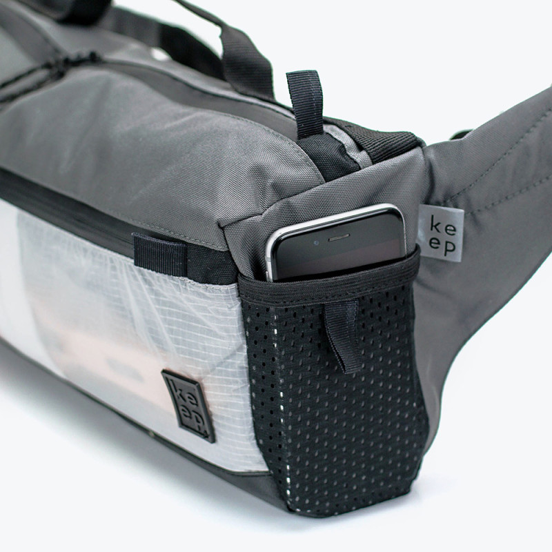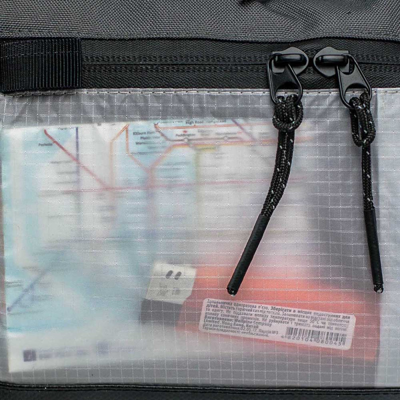 Основний відсік виробу здатний помістити дволітрову пляшку води, ліхтар або фотоапарат. Також сюди поміщається планшет розміром до 8-ми дюймів. Еластична стрічка всередині формує зручні відділи для зберігання дрібниць і інструментів. Є внутрішні сітчасті кишені і зовнішні. Відділення спереду містить кріплення для ключів.
