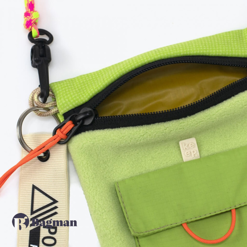 Keep Fjørd Mini 1L Lime Polartec — це сумка, яка стане в нагоді в повсякденному житті і яка стане корисною в подорожі. У неї можна покласти всі найнеобхідніші дрібниці. Аксесуар виготовлений з перероблених матеріалів, тому входить в зелену серію українського бренду Keep.