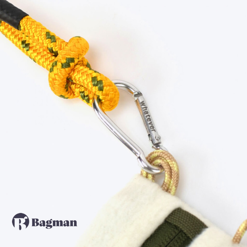 Замість плечового ременя тут довгий паракорд, який пристібається з обох боків карабінами. Зовні є світловідбиваючі деталі, щоб безпечно гуляти ввечері.