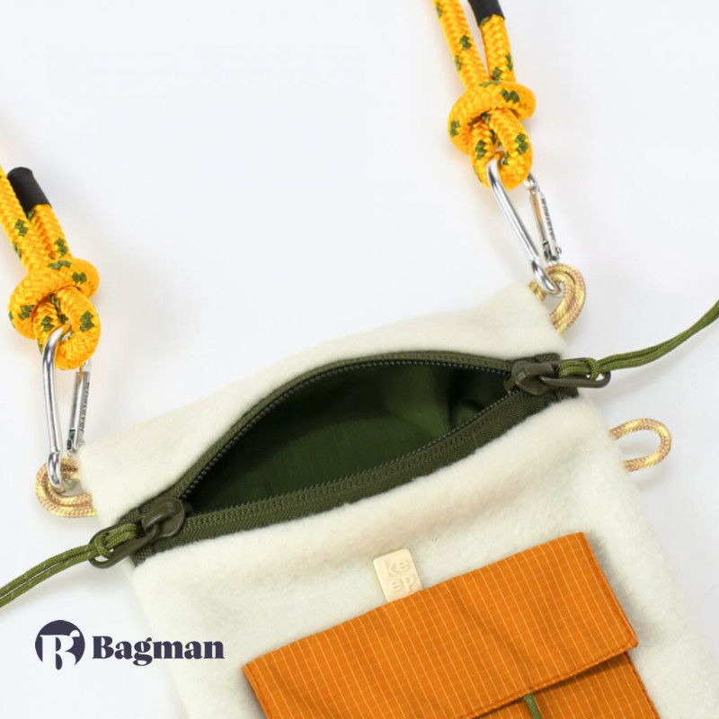 Сумка складається з одного головного відділення, всередині якого є кріплення для ключів. Внутрішня підкладка зроблена з ріпстопу. Застібається сумка двосторонньою блискавкою. Ззаду і спереду є додаткові кишені. У сумку поміститься телефон і документи, готівка та картки, серветки, ключі, а збоку можна прикріпити сонцезахисні окуляри.