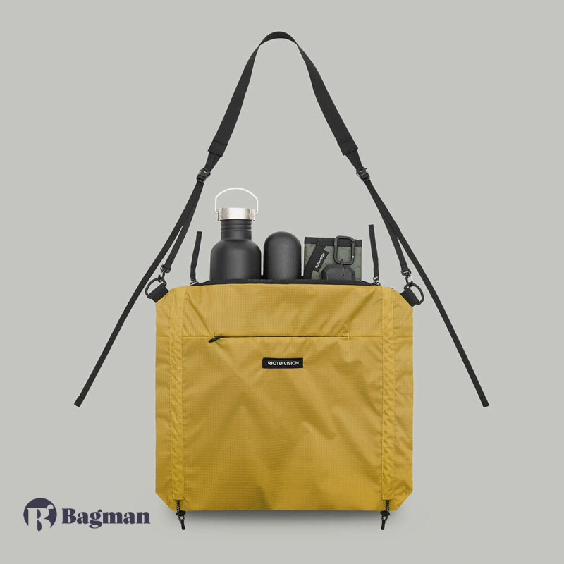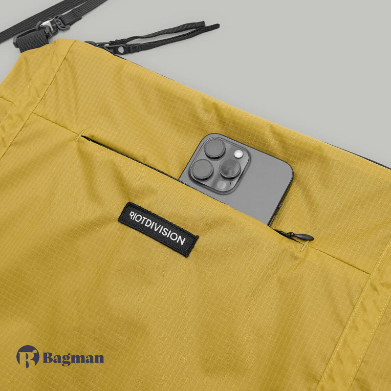 Сумка через плече, що виготовлена з надлегкого ріпстоп нейлону з водовідштовхуючим напиленням. Може зменшуватись в об'ємі завдяки еластичним кордам по боках сумки.