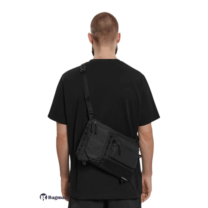 Сумка середнього розміру через плече, виготовлена з вологостійкого нейлону. Вміщує планшет, 13" лептоп та інші необхідні речі.