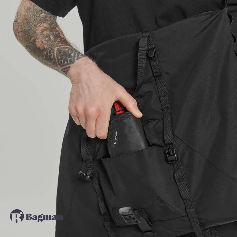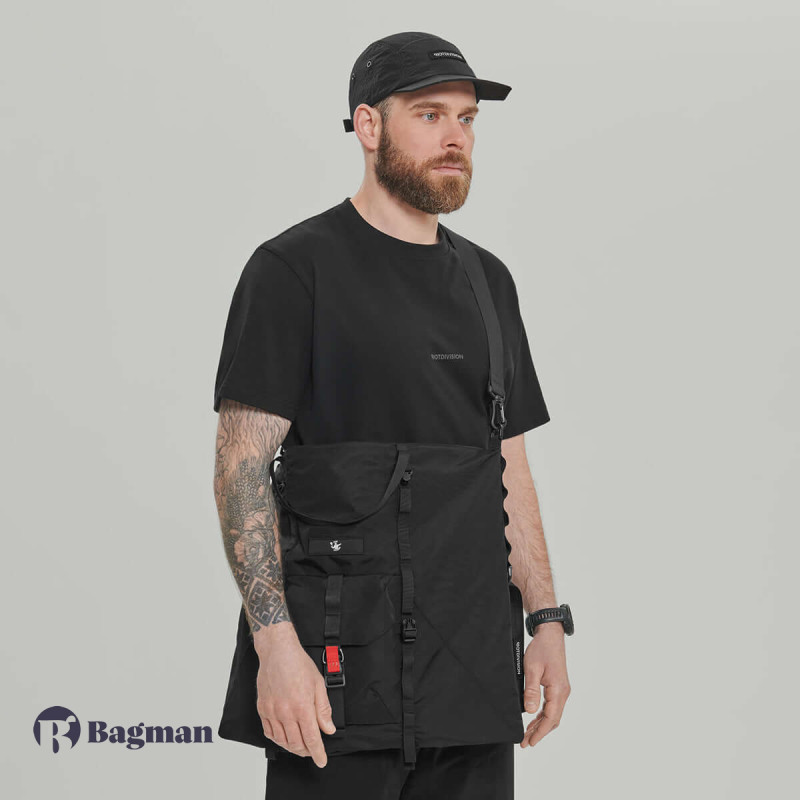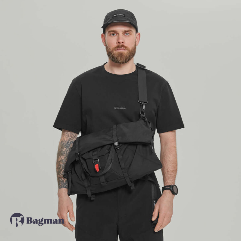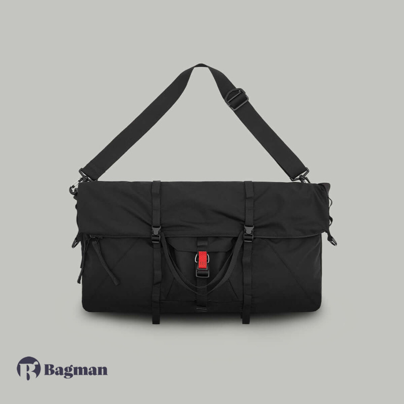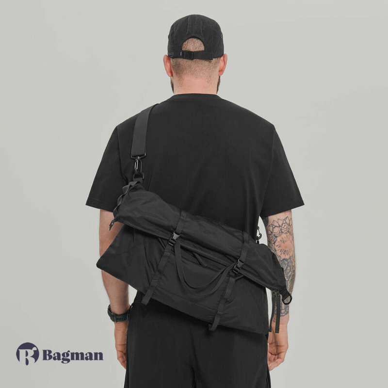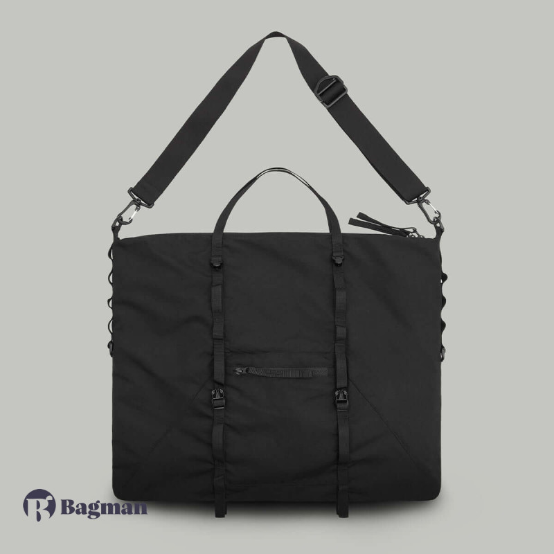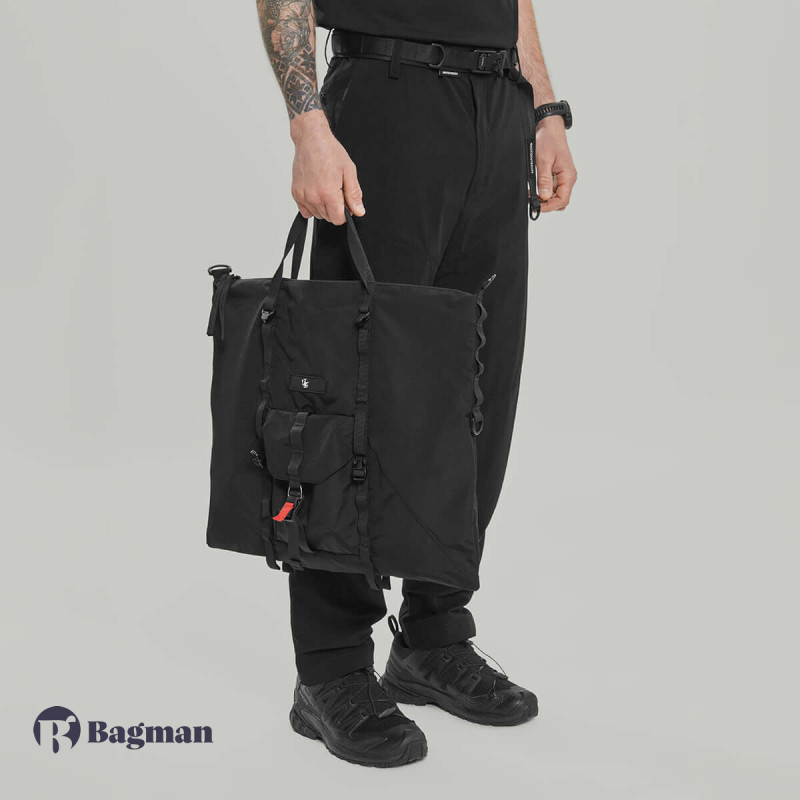 Місткий тоут може бути компактним ролом, складеною навпіл сумкою через плече, або розгорнутий при завантаженні продуктами, тренажерним або кемпінговим спорядженням.