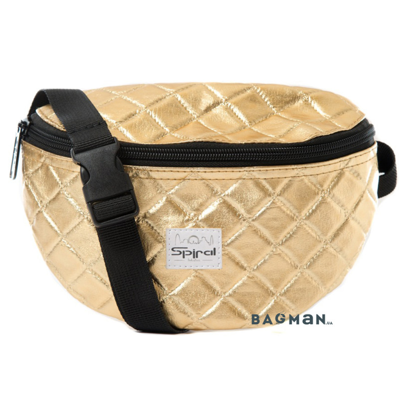 Поясная сумочка состоит из основного отделения на молнии и миниатюрного потайного карманчика. Изготовлена она из блестящего золотистого полиэстера, который ослепительно сверкает на солнце. При помощи регулируемого узкого ремешка Вы сможете подобрать подходящую длину для комфортной носки. Он застегивается пластиковой клипсой или так называемым фастексом.