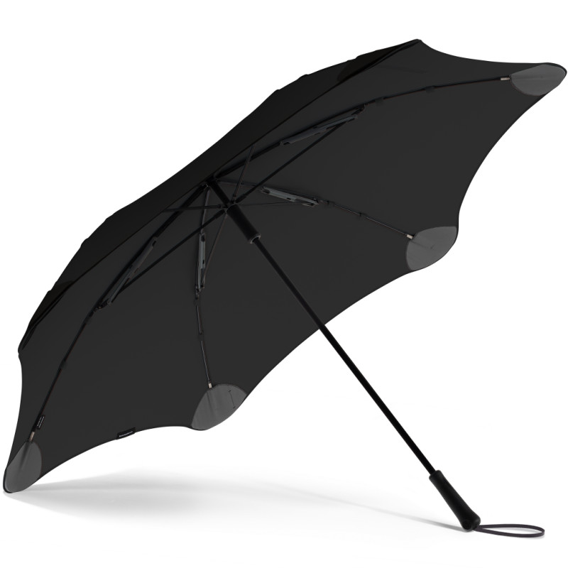 Парасоля BLUNT Executive Black створена для прогулянок удвох. Вона має великий купол, який рівномірно натягується за допомогою шести спиць. Поліестер Quick Dry, з якого зроблений купол, швидко сохне і повністю водонепроникний. Парасоля має форму тростини і розкладається механічним способом.