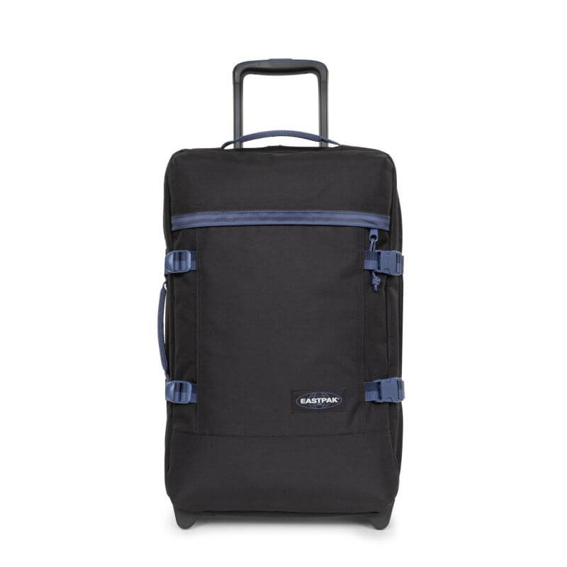 Eastpak TRANVERZ S 42L - це дорожня валіза, яка підходить для ручної поклажі. Модель має гібридний корпус: спереду валіза м'яка, а задня сторона має міцний каркас. Виготовлено валізу зі зносостійкого поліестеру. Валіза має два колеса. Для стійкого вертикального положення є спеціальні підставки. Для зручного транспортування багажу передбачена телескопічна ручка і ручка-переноска зверху. З боків у валізи є по два компресійних ременя. Всередині валіза розділена на дві окремі секції. Є невелика внутрішня кишеня і кишеня на блискавці зовні. Двоколісна валіза оснащена кодовим замком TSA з тризначною комбінацією та системою плавного ходу коліс.