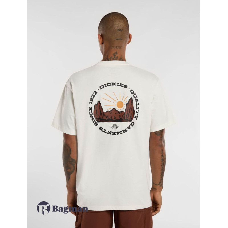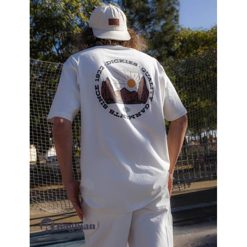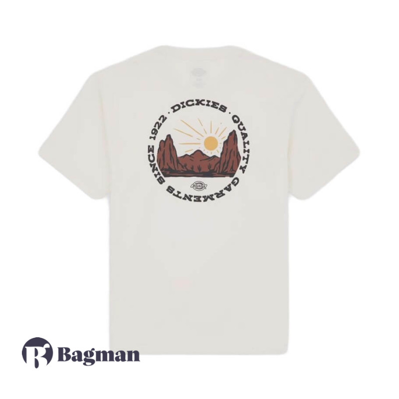 Inspired by our workwear heritage crafting quality clothes for the makers and shapers of the world, the Outdoor short-sleeve t-shirt is a relaxed-fit everyday wardrobe staple made from 100% cotton jersey. It has an arched western Dickies logo on the front and an vintage circular mountain range graphic on the back.