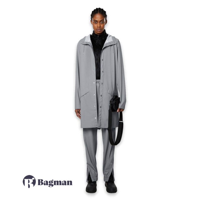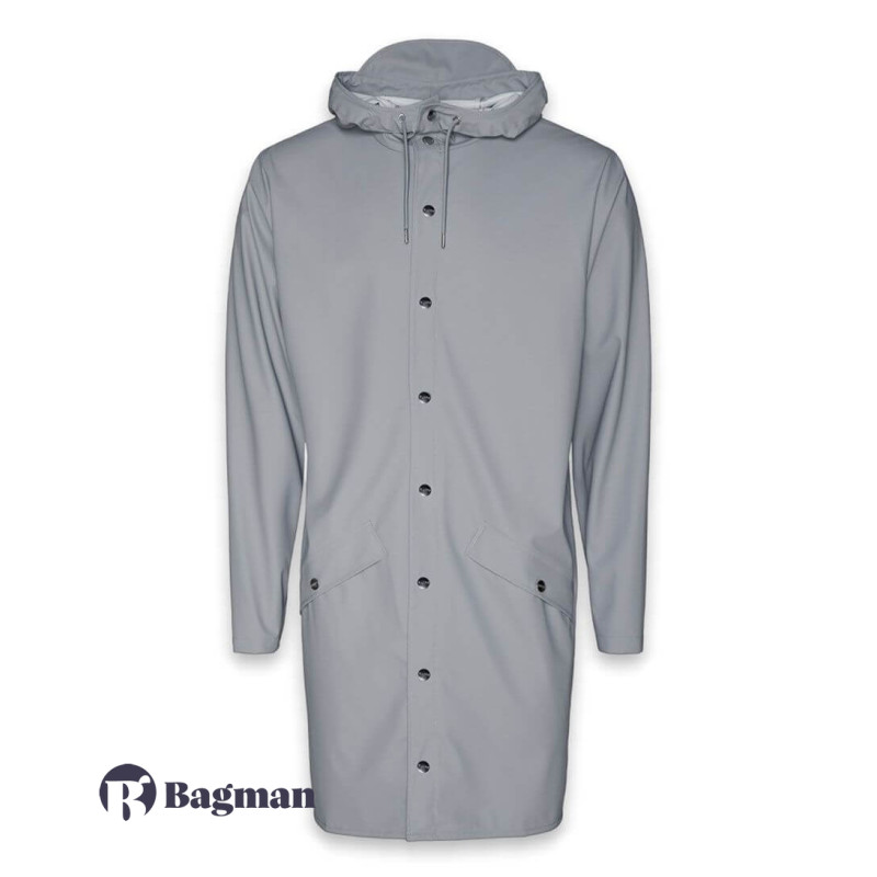 Довгий жакет — це подовжена версія класичного дизайну Rains Jacket. Ця завжди сучасна куртка-дощовик унісекс забезпечує високу функціональність у мінімальному силуеті. Особливості включають подвійні зварні косі кишені з клапаном, регульовані манжети та поділ «риб’ячий хвіст». Образ доповнюють застібки-застібки, люверси під пахвами та кокетка на спині з прихованими вентиляційними отворами.