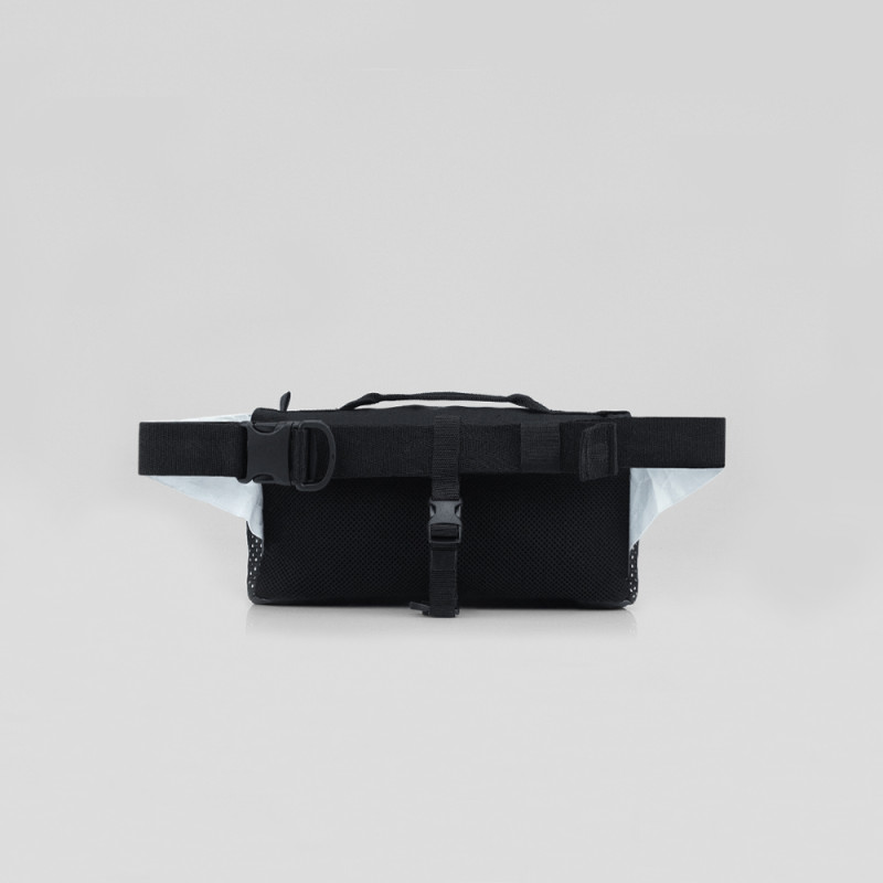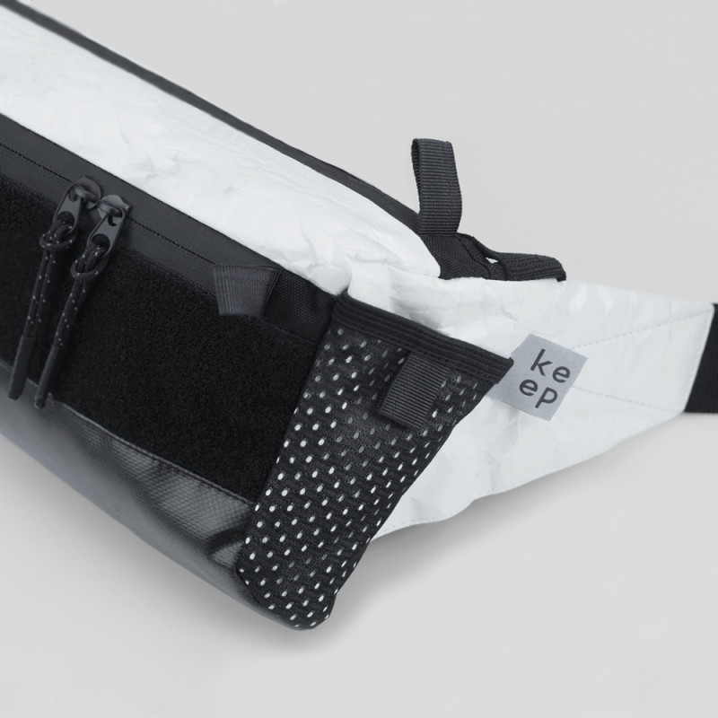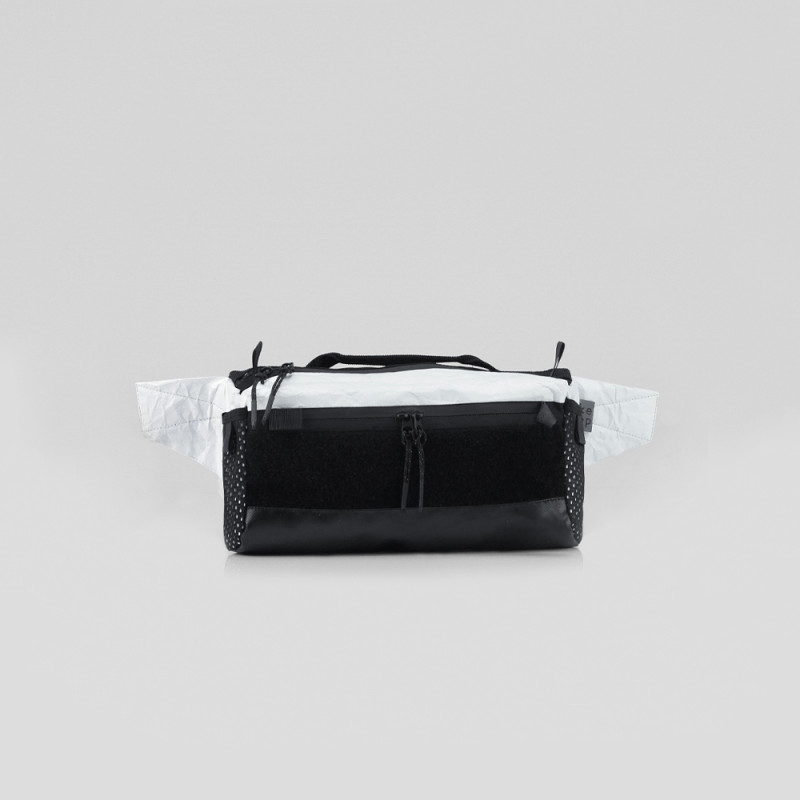 Аксессуар изготовлен из водостойкого тайвека. Этот материал устойчив к большинству химических веществ, но может быть поврежден кислотами. Молнии на отделениях водонепроницаемые. Сумка спереди оснащена велкро панелью, к которой можно прикрепить аксессуары.